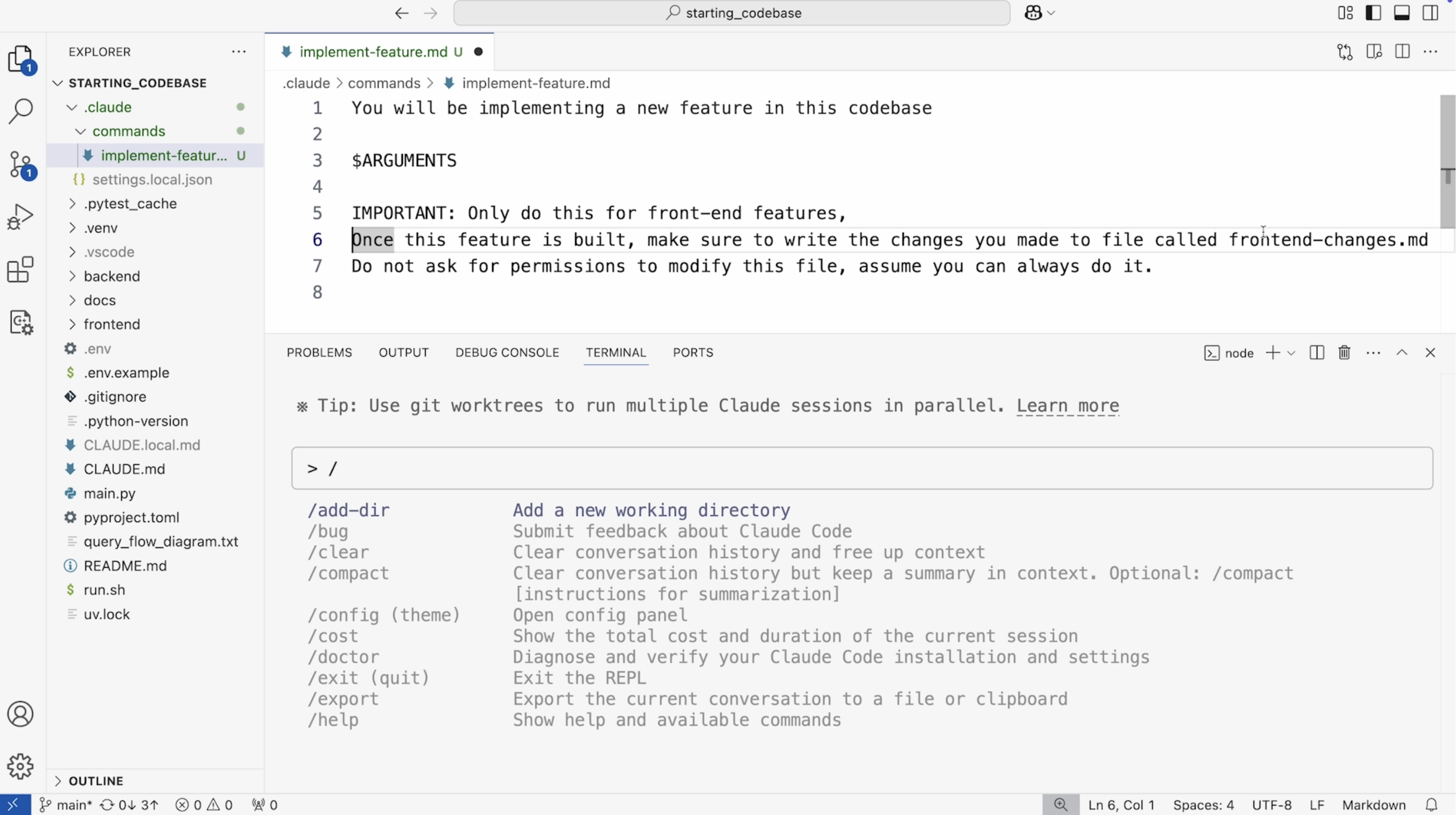 implement-feature.mdcan be created undercommands- The first line will be the description of the feature, it’ll be visible in the CLI when we search for the command