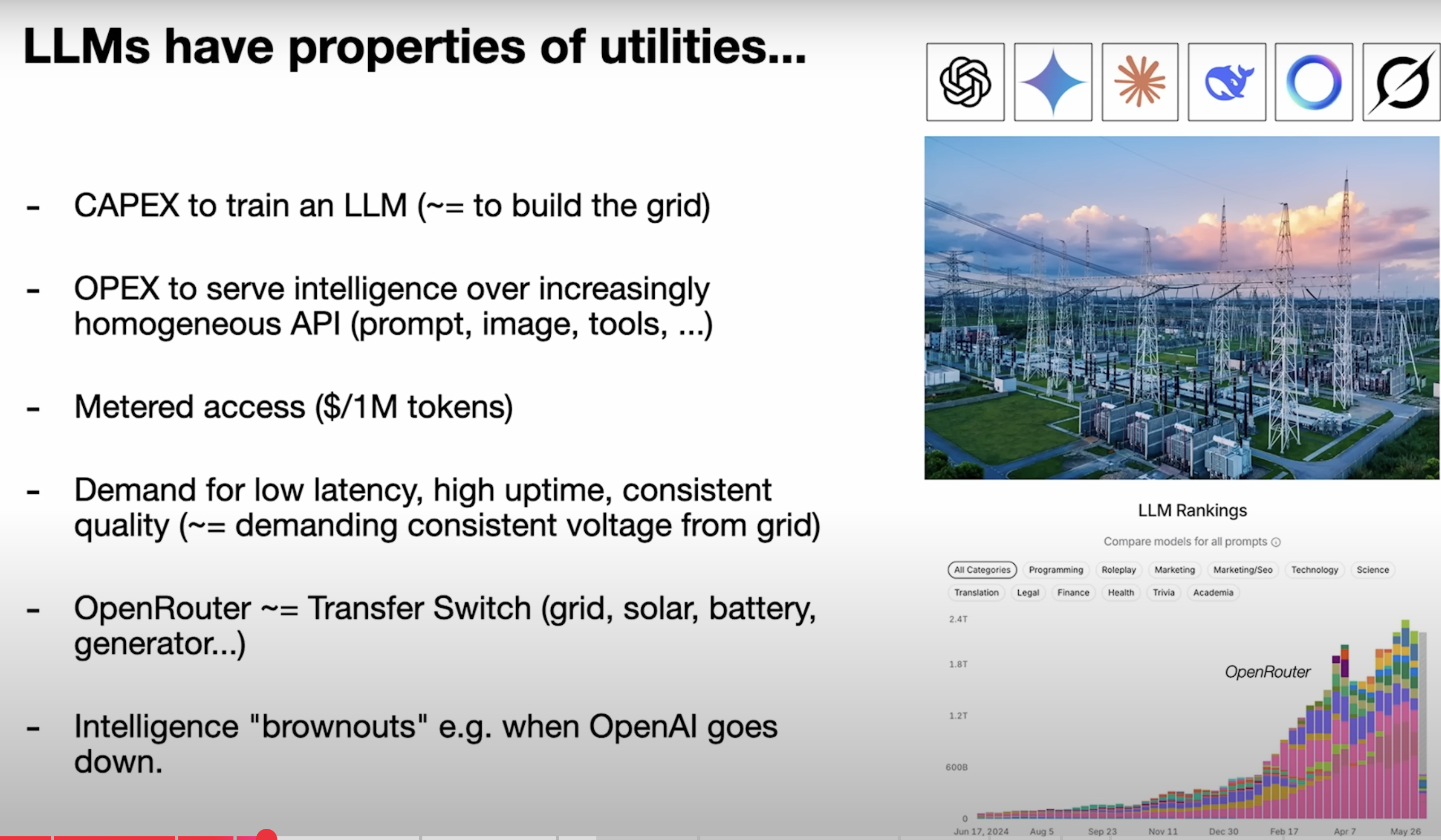 - LLMs have the properties of utilities .. (Similar to Electricity)